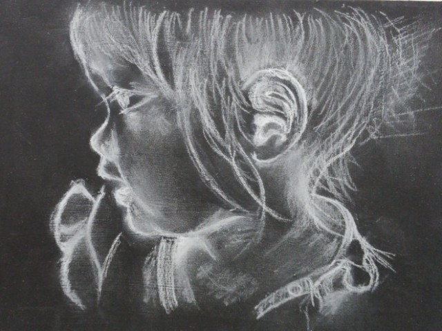 ホワイトペンシルだけでお孫ちゃんを描きました